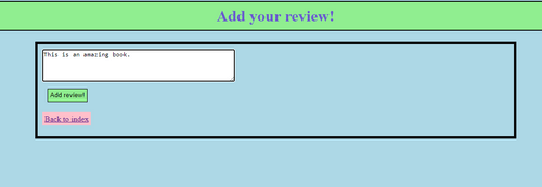 A form for adding a review for a book. This page also shows an error message if the user leaves the input box empty.