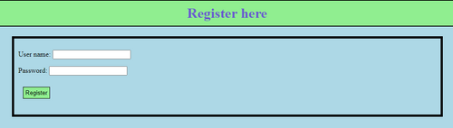 Register form for new users. This form will show an error message if the username already exists or if the input boxes are left empty.