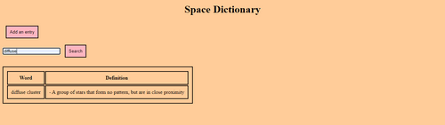 For example, the user searched for "diffuse" and only the entry with word "diffuse cluster" showed up.