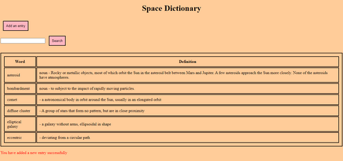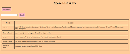 This is the home page that shows a table of all the words and their definitions.