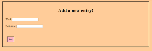 After clicking on the 'Add an entry' button from the home page, the user can add a new entry from this form.